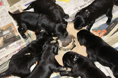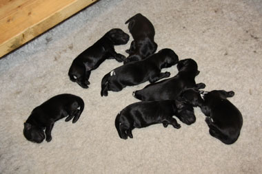 21.09.13. I dag er Beste gjengen blitt en uke gamle.Så i dag er det den første klo klippen og mark kuren . Phu puster alltid lettet ut når jeg har klippet alle de små klørne. De sitter liksom ikke helt stille de små røverne. Får klippe når de akkurat har drukket melk og er litt ekstra trøtte.I dag er Kjell på jakt prøve i Østfold med 3 av gjengen våres. Jeg holder hus her med de 7 andre voksne og de skjønne små trolla :-) Skulle så gjerne vært med, men man kan ikke få til alt. heldigvis kommer de hjem igjen i kveld. Blir spennende å høre hvordan det har gått. her er Arya og Kaya. Så er det alle sammen. nå begynner det å bli trangere om plassen i melke baren