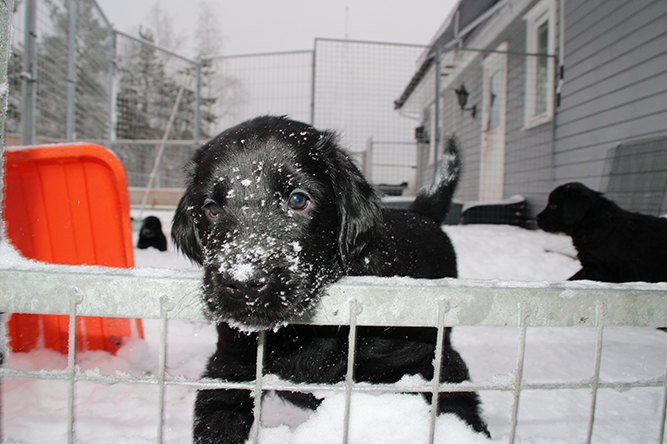 09.12.21. I går var vi mange turer ute i snøen å lekte. Det var mildere men det blåste en del så det ble korte turer ut. De elsker å løpe å ha det gøy ute I dag kommer nye besøk til trolla her :-)Å for ikke å glemme det Alle blir kontaktet av Elisabeth Nordhammer fra Agria for å vidre føre forsikringen på sin valp . Alle må være forsikret når de reier herifra :-) Her er JVB/Ronja og JHB/Tanja