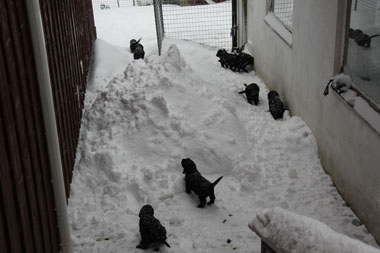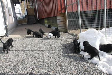28.03.15. Nå er hundegårdene rydda for snø så nå har de danse plass igjen. det er så gøy å løpe og buse masse ute :-)I dag kommer nye besøk til de skjønne trolla våres. Vi skal begynne å sette de på bordet nå også for å se mer på hver valp og begynne å tenke hvem som skal hvor. Vi har en uke fremover nå til å nøste dette :-) de er utrolig jevne både i utseende og i gemytt så vi det blir spennende å se mer av de stående på bordet også. Her er GVB og GHB