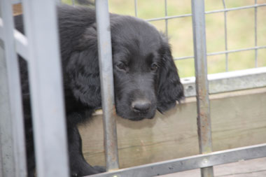 16.04.15. I går flyttet Fetch inn i stua og i natt har han sovet i bur på soverommet vårt. Han sov godt fra kl 23 til kl 05 :-)Han kan jo ikke være alene igjen nede. Da hadde nok verden vært veldig trist. Han skjønner ikke hvor alle er blitt av henne. Men både Katten Tiril og Giga er jo også ok leke kamerater. I dag skal han være med meg en tur på jobben også. Her er Fetch