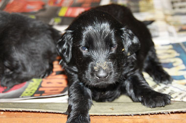 19.03.15.Små trolla hadde besøk av barnebarnet til Berit Og Thorleif i går. Ei lita jente som heter Nora som ghadde gledet seg så til å se de små bebyene til Zelma. Hun viste de stolt frem :-) Vi håper at været blir bedre i dag slik at vi kan ta noen turer ut. I går var det inne vær hele dagen. men hele huset var trøtt virket det som . Både valper og voksne sov det meste av dagen.Zaga skadet seg stygt forrige kvelden så hun lå også rett ut det meste av dagen i går. Vi krysser fingrer for at det er bedre form på henne i dag. Huff det går fort i skogen med disse flattene også i mørket og tror hun raset ned en fjell skrent. Vi hørte bare et hyl og et til før hun kom tuslende . Og hadde tydelig vondt. Oppskrubbet på nesen å på knærne. Men vi får krysse fingerer for at hun er bedre i dag. her er i hvertfall to troll unger. Det er Gutt nakke og jente rumpe.Vi trenger aviser så ta med når dere kommer på besøk :-)