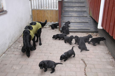 12.04.15. Ja så er det bare to igjen på valperommet av alle 11. Tilbake meldingene er helt supre på de som har flyttet.Trygge gode valper :-) Deilig å høre for hønemoren her :-) Her er Maya & Fetch