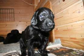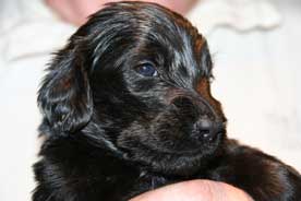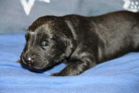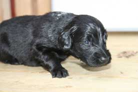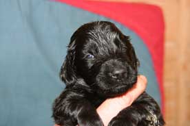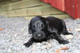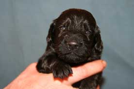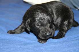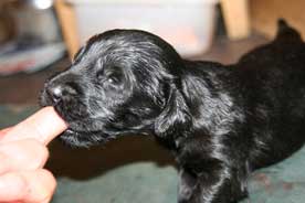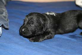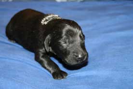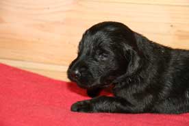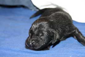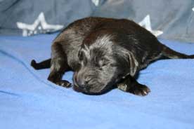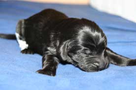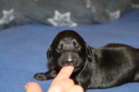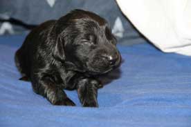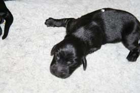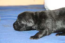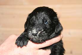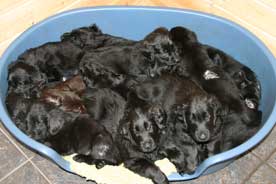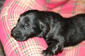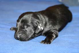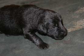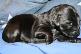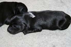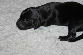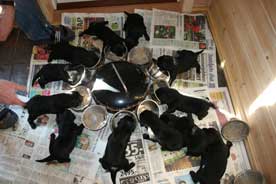 10.04.09. Nå har trolla blitt 3 døgn gamle. De spiser og koser seg. Kellie er en liten hønemor som vasker og pusler med sine 12 små. Det er jo heltids jobb bare med rumpe vasken. Men hun hadde faktisk tid til å bli med en kjapp tur i skogen i går. Men gjett om bena gikk fort når vi snudde for å gå hjem igjen. Det var hun veldig klar for. Her er jente umerket & gutt rumpe. Godt vi vet hvem som er hvem. De r utrolig like og silkesvarte. :-)