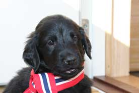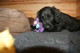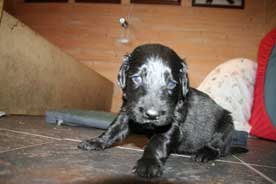 07.06.09. I dag er det siste dagen jeg skriver i valpedagboken. Maya reiser hjem til sin familie i dag. Hun har vært "alene" hund i et døgn nå. Hun var med på skogstur med de store i går kveld. Det var kjempe spennende. vi bar henne med jevne mellom rom for 3 km er alt for langt for henne.Når hun hadde hengt på armen en stund å hvilt ut så fikk hun løpe litt igjen. Hun har sovet i buret ved siden av de store i natt. Det har gått kjempe flott. Hun måtte ut en tur klokken 5 for å tisse og bæsje. Så sov hun videre til de voksne ville ha mat. Hun er helt herlig. Det er rart å ikke skal skrive mer. Men alle trolla har flyttet til flotte nye hjem og har fått det kjempe fint. Gleder meg til første valpetreffet som blir 2 august. Skal bli veldig fint å se de igjen. Her er Maya.