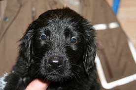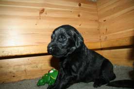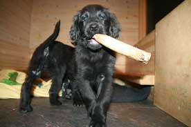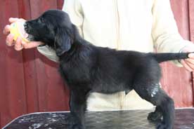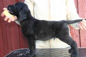 15.05.09. Magene er blitt helt fine igjen. Det hender det kommer en stein eller to igjennom systemet men det ser ut som om det går bra. De tygger på alt for tiden. Alt skal sjekkes ut. Mamma fyker rundt å redder det ene etter det andre ute. En av yndlings hobbyene for en del for tiden ,er å ta tak ytterst i halen på en eller annen å bare dra. Da skal jeg love det blir hyl og vræl. De trener nå på hvor hardt det er lov til bite på hverandre. Dette er viktig at utvikles godt i valpe tiden. For å få en valp som ikke har utviklet bite hemmingen det er ikke gøy når det blir en voksen hund. Det er det samme som med sandkasse leken på oss mennesker ved 1 -2 års alderen. Vi slår spaden i hodet på naboen å jammen slår han tilbake gitt. Da lærer vi var som er lurt å ikke lurt :-) Her er jente umerket og gutt rumpe.