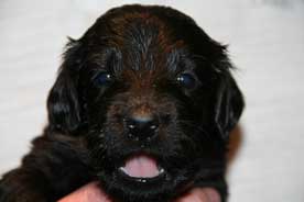 21.04.09. Nå har ørene åpnet seg også. Så nå nytter det ikke å liste seg inn i rommet med tro på at det går bra uten at noen våkner. Det er spennende å følge to valpekull som bare er en ukes tid i mellom. Man får liksom gleden dobbelt hver gang det skjer noe nytt. Men nok å gjøre med 20 troll i huset det er det. I dag er det den store klo klipp dagen her på disse trolla igjen. For nå har de faktisk blitt 2 uker. Her er GVB & Ghode.