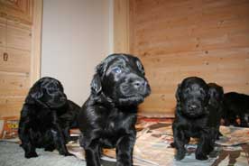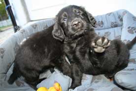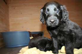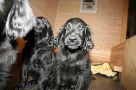02.06.09. Det var deilig å komme hjem til trolla. Det var en del løse mager i går i varmen. Og matlysten var ikke av det store. Marita & Emma har gjort en kjempe jobb her. Emma har nok hjulpet mest til med fante streker. Men Marita har fått kjenne hvordan det er å ha flere valper å litt små syke mager. Det er ikke mye gøy. Men trolla så kjempe herlige og fine ut når vi kom hjem. Blide og fornøyde. Så de har hatt godt stell. Store søster Lhea ble 2 vinner av Åpen klasse på Working testen i går og hun ble nr 9 totalt i Flat mester skapet sammen lagt fra både søndag og mandag. Så det var kjempe gøy. Når Mamma Kellie samtidig går å blir nr 3 på bk prøven så var jo dagen virkelig bra. Hun har jo ikke trent noe de siste 4 mnd. og klarte allikevel å smelle så bra til. Se resultater :-) Her er Smilla & Kero.