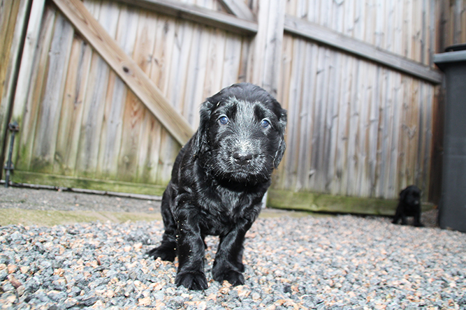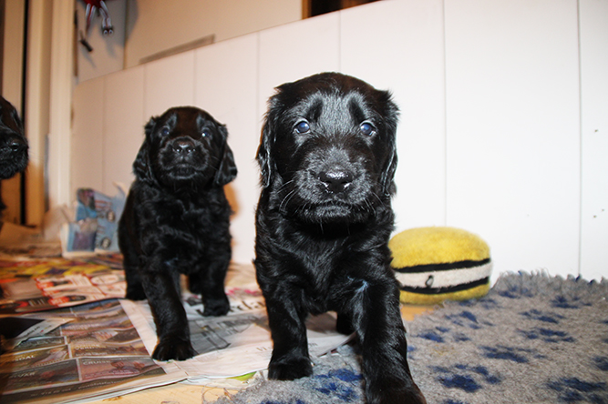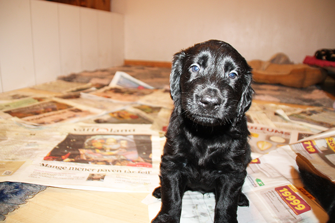 25.02.26. Tenk i dag er de skjønne sorte gullene våres blitt 2 uker gamle. Vi åpnet opp valpekassen så de fikk større plass i går. Nytt teppe var også deilig :-) Luna har virkelig strukket seg å kost seg i natt sammen med bebisene sine . Det var vel trangt nå. Vi har en liten del med aviser og i løpet av de neste dagene nå vil de begynne å trekke vekk fra der de sover for å tisse og bæsje. det er en naturlig renslighet som er viktig å ta vare på. Å la de ha plass til å komme seg ut for å gjøre i fra seg :-) I dag er det klo klipp på hele gjenget igjen. vekten øker så det suser . I dag skal de få smake sin første beby valpemat. Royal canin starter mouse. Det pleier å bli veldig populært . Her er JN og Gn