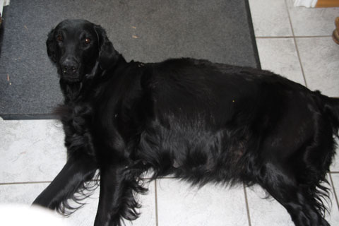 Da starter vi valpedagboken for Zøkende trolla :-) Giga er nå i da 14 oktober 55 dager på vei fra første parrings dag. Men jeg er ganske så sikker på at den siste parringdagen er den mest riktige. og da er hun 50 dager på vei. Hun er blitt rund og god. Og vi har vært på ultra lyd for ca et par uker siden. veterinæren mente hun så 6 - 7 stykker da. Det kan være flere og det kan være hun har sett den samme fra begge sider. men valper er det i hvertfall inni frøkna :-) Kjenner så vidt sparkingen nå . Hun måler 79 cm på det tykkeste nå og 72 cm på det tynneste. Blir spennende dager fremover nå :-)Her er frøkna nå i dag :-)