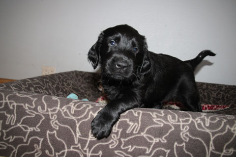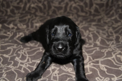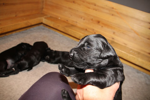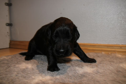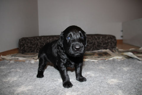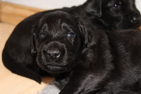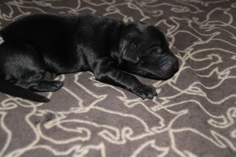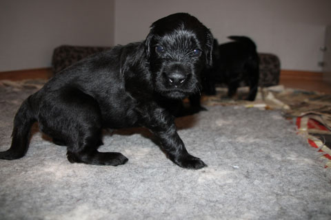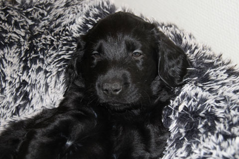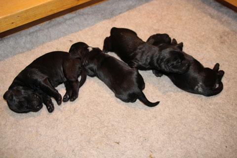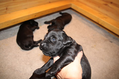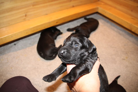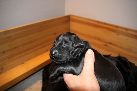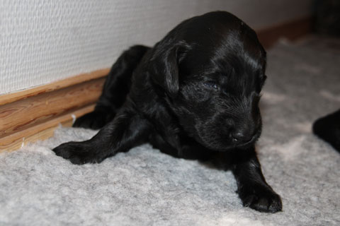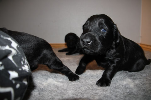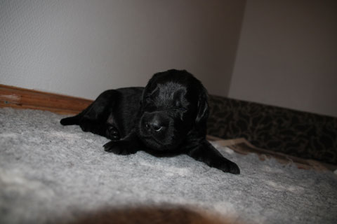 04.11.19. Nå har alle 4 åpnet øynene helt. De er bare så nydelige når de titter på en med de de skjønne blå øynene. Øynene er blå i starten men går gradevis over i grå nyanse før de til slutt blir nøtte brune. Det er vanskelig å få tatt fine bilder foreløpig med øynene åpne. de kniper igjen av det sterke lyset fra blitzen :-) Her er Gutt nakken og gutt merket halen.