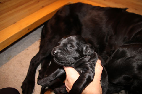 23.10.19.sel har startet. Nå er det kommet en jente og en gutt :-) Nå er det kommet 3 gutter og en jente. Giga har fremdeles små veer. så det kan ligge flere innunder ribbene eller det kan være den ene morkaken vi mangler . Giga stor koser seg med sine små. De er bare helt til å spise opp :-)