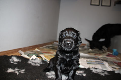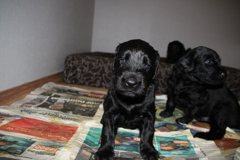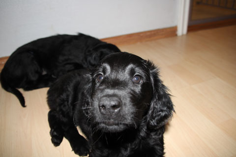 03.12.19. Nå har vi sluttet med å male opp maten til grøt. I går fikk de valpematen i hele kuler bare oppvannet med varmt vann og litt puppy vom i . Det var godt det :-) De klatrer nå lett over stengslet fra valperommet så der må vi finne en ny løsning i dag :-) her er Frida og Bonzo