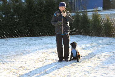 Søndag 12 januar 2014. Da kom endelig dagen vi har gledet oss. til. Valpetreff nr 1 for Beste trolla. 4 av 6 troll hadde tid og mulighet til å være med hos her i dag. Vi startet dagen med alle forskjellige lydighets øvelsene vi har på et valpe kurs. Utrolig hvor flinke alle har vært hjemme. For dette var noe de alle 4 klarte med glans. Her er alle sammen så er det Dennis så er det Kaya.