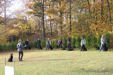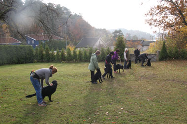 Etter dette gikk vi inn i hagen å fortsatte med en del lydighets øvelser som bli sittende , bli liggende , bli stående samt det å holde kontakten med hunden sin.Kjempe flinke er de blitt hele bunten. Det er god kontakt med hver valp og deres familie og det er så deilig å se.Nå er det bare å være super konsekvent en 2 - 3 uker for å stadfeste og komme seg videre i ungdoms perioden.