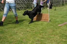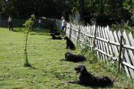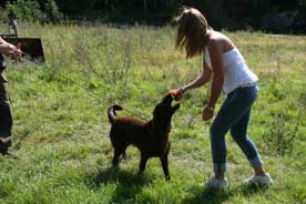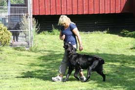 Vi fortsatte etter dette med lydighet inne i hagen. Her gikk vi igjennom på plass, både med og uten bånd. Bli øvelser, Innkalling ,stå og hopp over hinder. Og for ikke å glemme. Være konsekvent. Da begynte de fleste å bli ganske så slitne i varmen etter all jobbingen. Så da var det pause med kake spising av Ellens nydelige sjokolade kake og pølse grilling.
