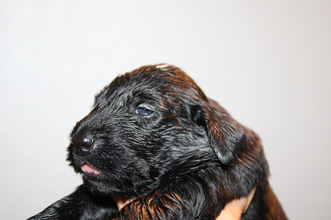 30.09.25. I dag er de skjønne tre døgn gamle. De vokser og trives.Det er mer fart i de når de våkner å skal ha melk. Hvis ikke Kimmie er kjapp til å legge seg så yrer det rundt henne. Noe hun tar med stor ro. Hun vet akkurat hvor hver og en er å legger seg ned der det er ledig plass å aker seg inntil valpene sine. Vi var ute å gikk en litt lenger tur også i går kveld. Kimmie stor kosa seg og var også veldig fornøyd når vi kom inn igjen. :-) Da ble hver å en vasket godt . Her er jente merket rygg og gutt merket halen