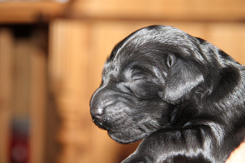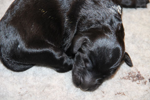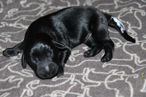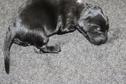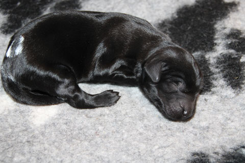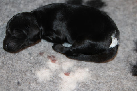 01.04.20. I dag er de skjønne små 3 døgn gamle. Lykke koser seg i mamma rollen. I går var hun med på den første litt lengre turen for å strekke litt mer på bena. det synes hun var godt. Men gjett om det vaar full fart til valpene når hun kom inn igjen :-) Hønemor :-) Her er jente merket halen og gutt merket halen.