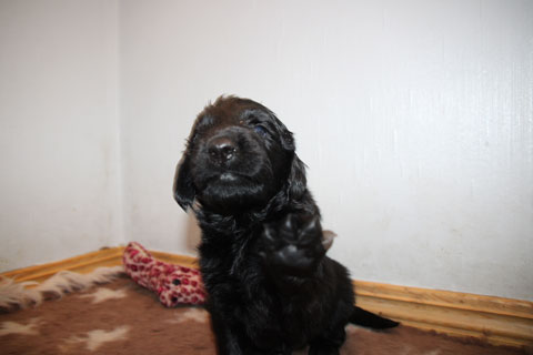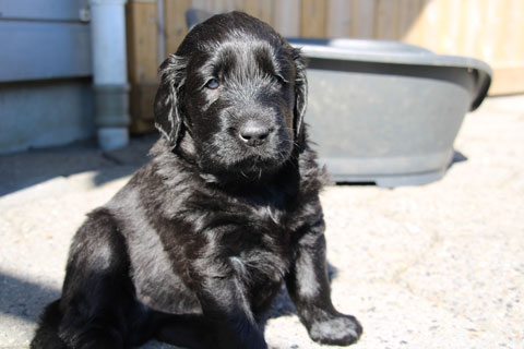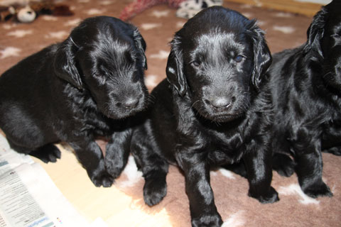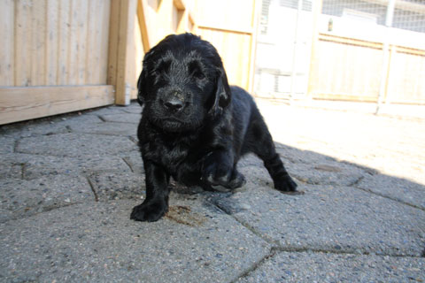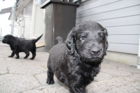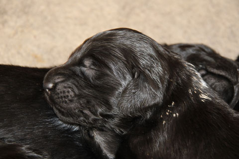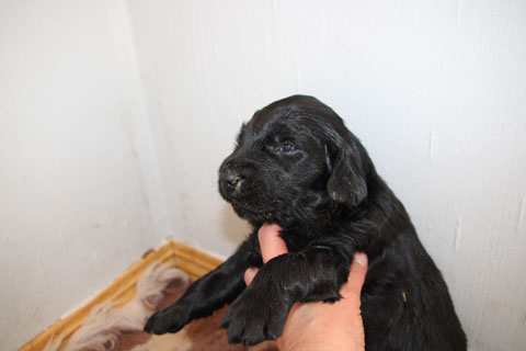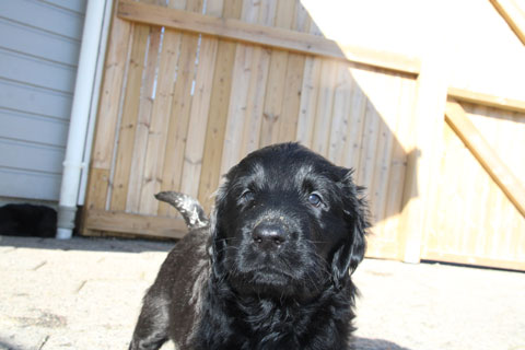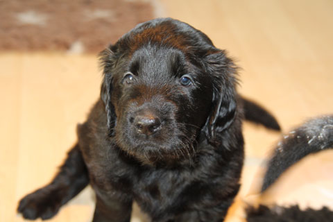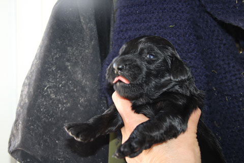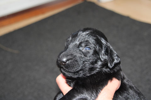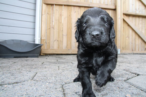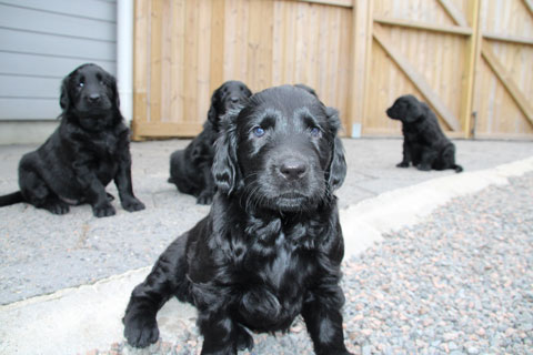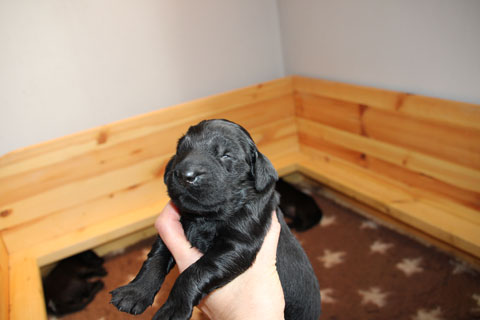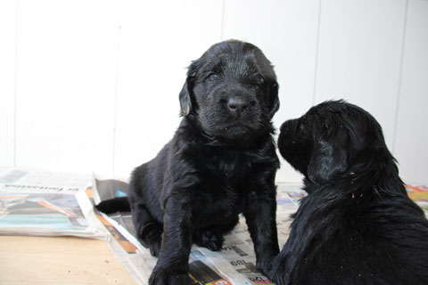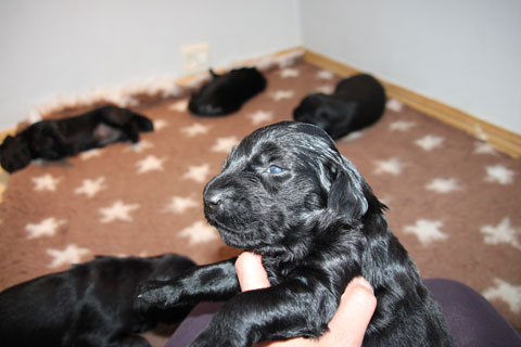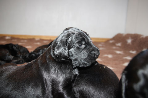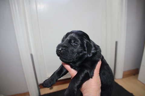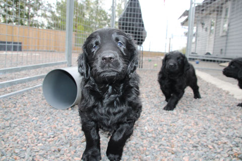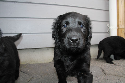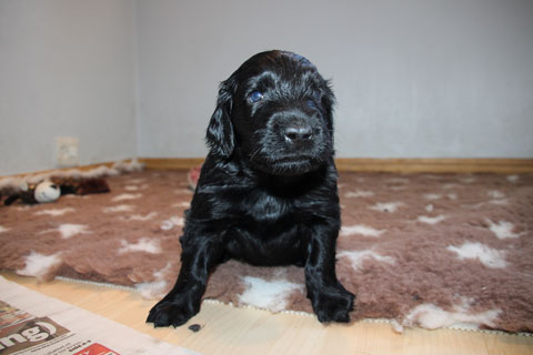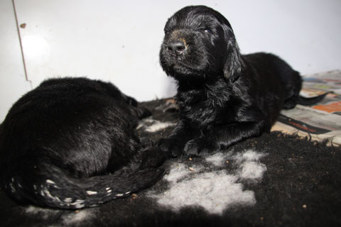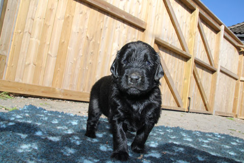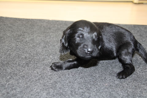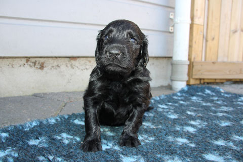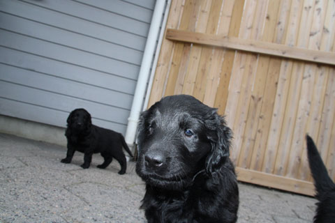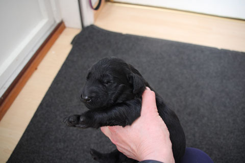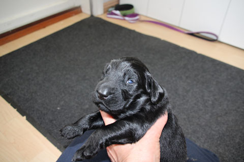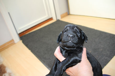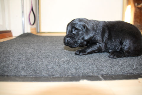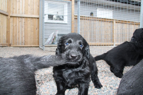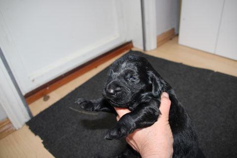 19.05.20. Veterinær sjekken gikk kjempe fint alle friske og raske og Meget god som helhets vurdering av kullet :-) Deilig. Anne Berit som eier pappaen var her også i går kveld å tok en kikk på avkommene sine :-) Anne Berit er Flat dommer og hun var meget fornøyd med kullet. Utrolige sterke og pene valper synes hun . Så vi er kjempe fornøyde her :-) Her er Teodor og Akira