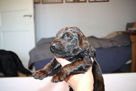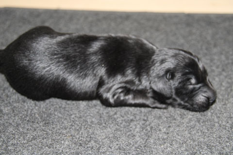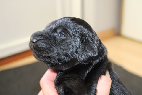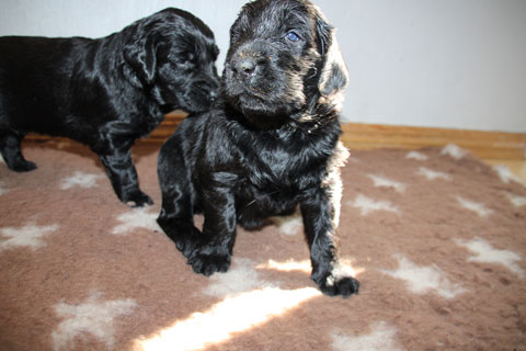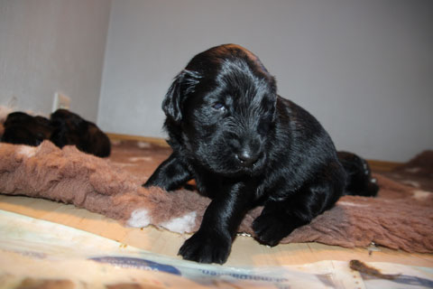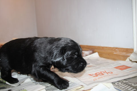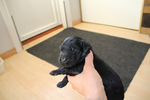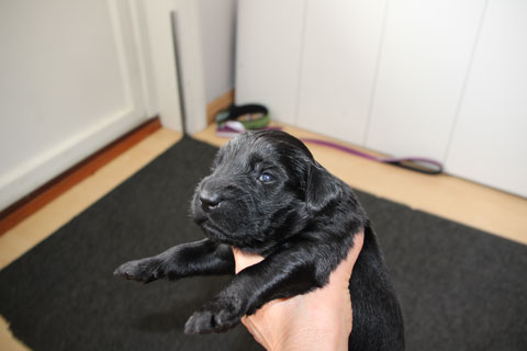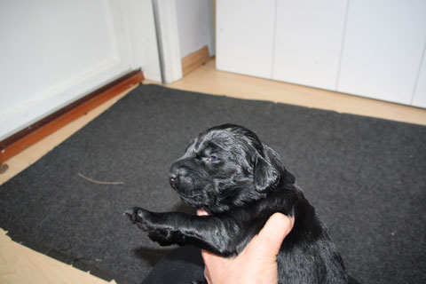 12.04.20 . I dag er de skjønne trolla våres blitt 2 uker gamle. Ny runde med klo klipp er på menyen i dag . Baby grøt er kjempe godt å de stor koser  seg. I går kveld åpnet vi valpekassen så de fikk større plass. det var populært :-) Nå er det å lære å vakle seg over på avisene for å tisse og bæsje. I starten  drar de over kroppen frem på avisen for så å tisse. men bakparten er jo fremdeles på teppet :-) men dette lærer de fort :-) Her er jente nakken og gutt nakken.