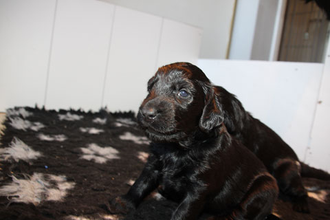 10.04.20. Nå må vi snart åpne valpekassen her. De er blitt så store å fine :-) Vi får prøve å holde igjen et par dager til frem til de er 14 dager gamle. Hørselen er nå i ferd med å åpne seg . Det skjer så mye nå fra dag til dag . det er så gøy :-)De kniper fremdeles når det blitzer når jeg tar bilder . Så ikke lett å få tatt fine bilder akkurat nå .Her er Guttvenstre bak og gutt høyre bak