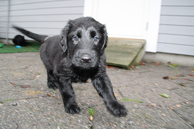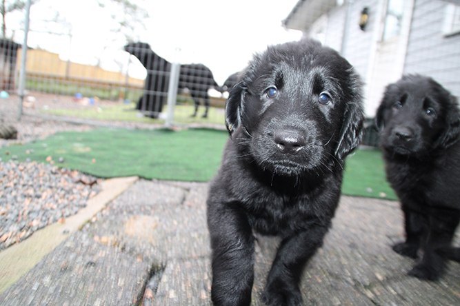 14.10.25. Utviklingen går i 100 her. I dag må vi åpne mer plass . De er blitt sykt flinke til å gå ut på avisene å gjøre i fra seg. I dag skal de få "gressplen" ved døren .jeg skjønner faktisk ikke hvordan folk klarer å ha valper i en liten valpekasse frem til 3 ukers alder. For her går det unna. De våkner å går helt ned i andre enden av innhegningen sin . Å de vokser så det knaker så det blir jo fort trangt. Hørselen har nå åpnet seg å de hører veldig godt når vi kommer inn i rommet. Da blir det liv :-)Her er gutt halen og gutt hode