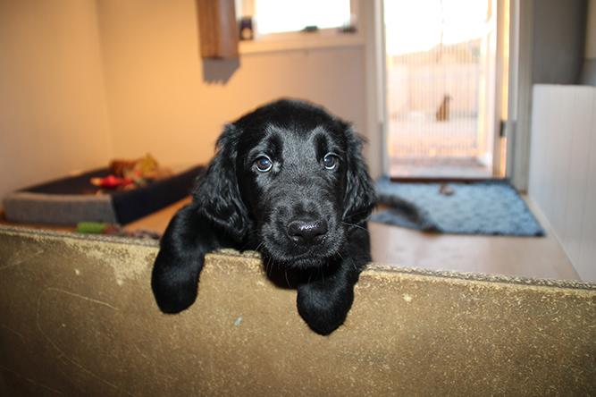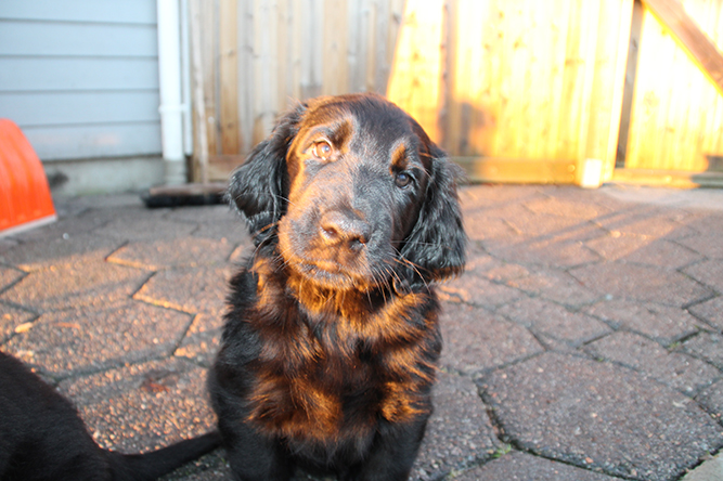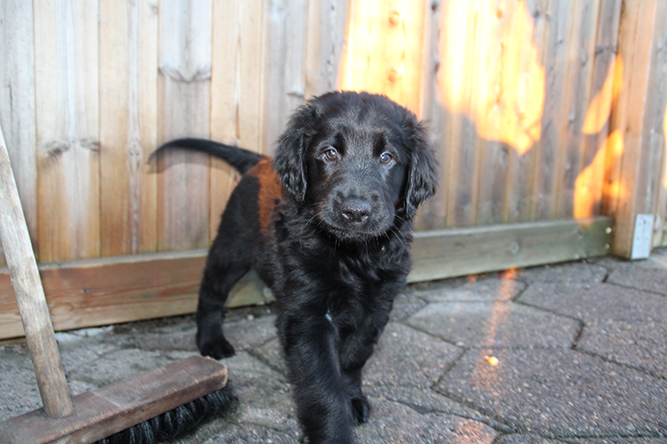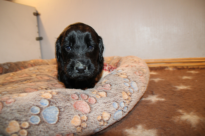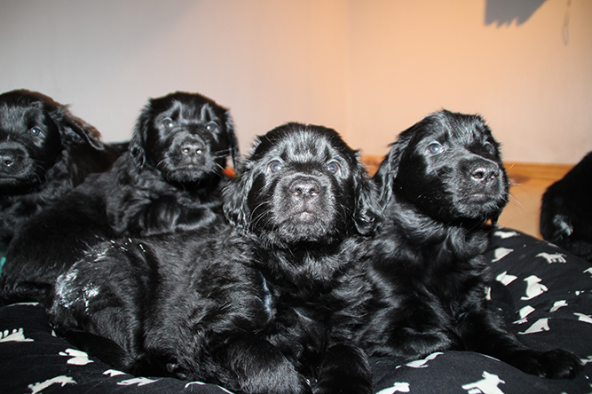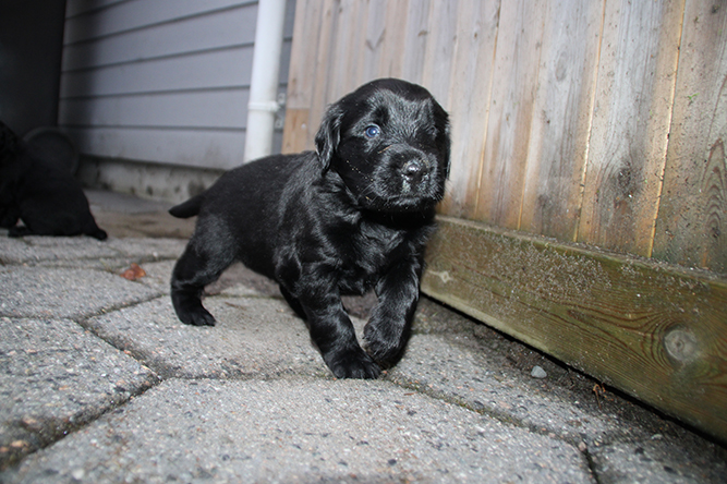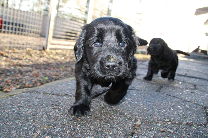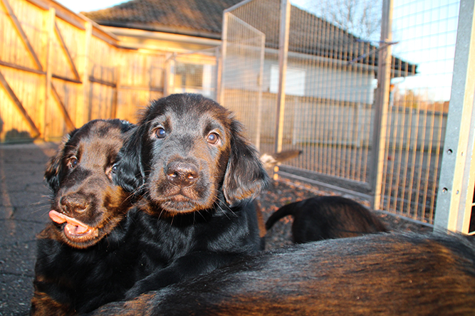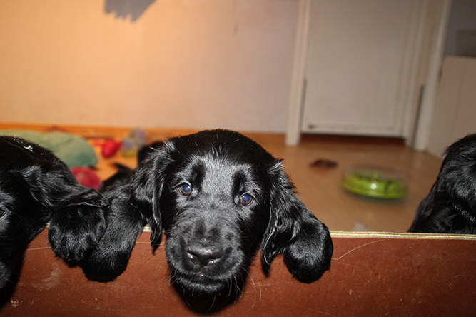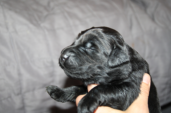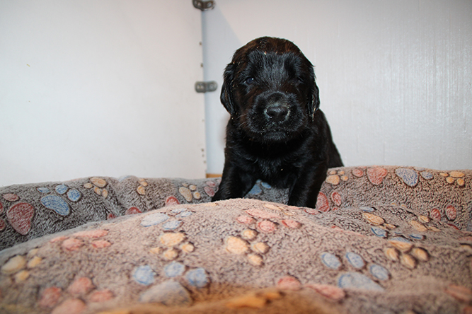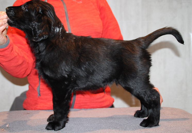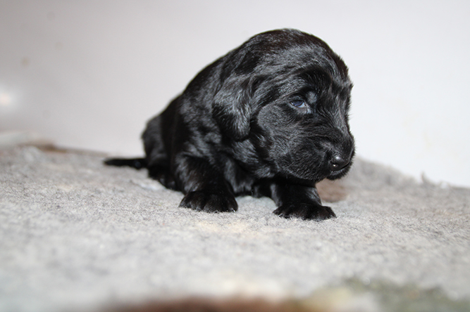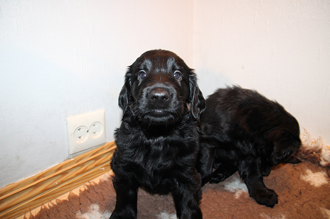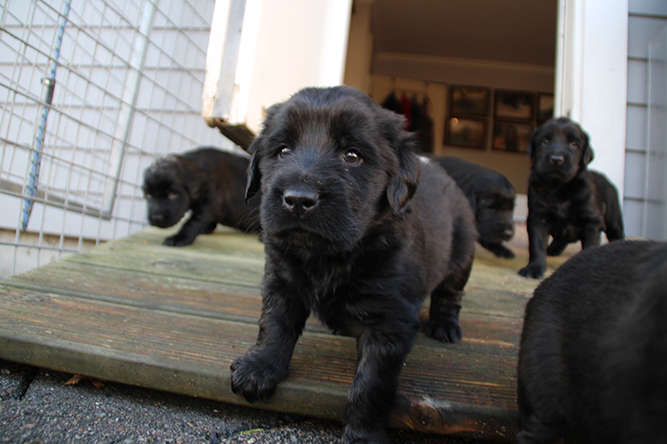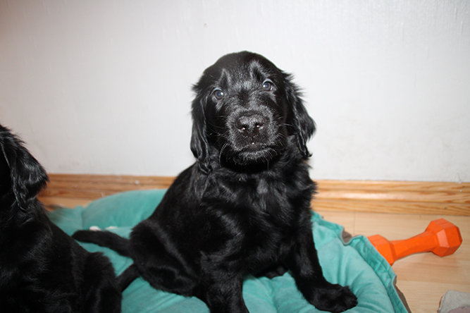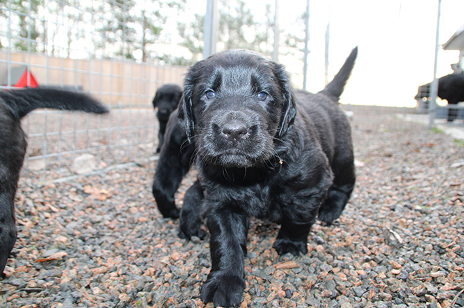 28.10.21. Det er fart i de små sorte gullende når de våkner nå. De åler seg fort gjennom valpekassen på leting etter puppen og melken :-) Ikke alltid like lett å få lagt seg Mille står noen ganger å ser litt fortvilet ned på haugen med skjønneste som åler rundt å funderer tydelig på hvor skal jeg legge meg fort ned så jeg ikke ligger på noen . :-) Hun er kjempe flink :-) Her er jente merket på rumpen og gutt merket på rumpen