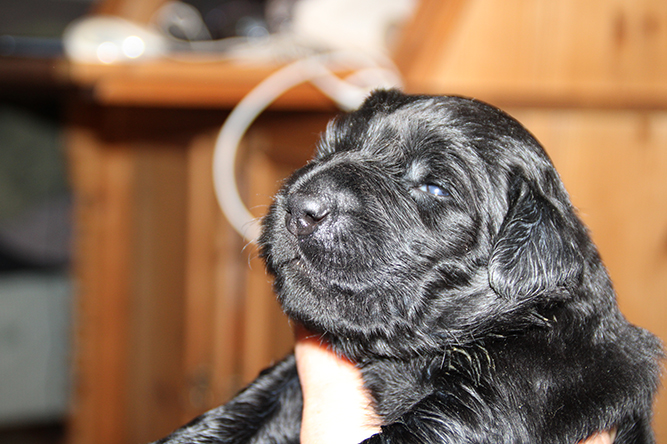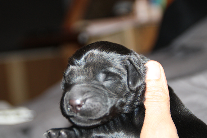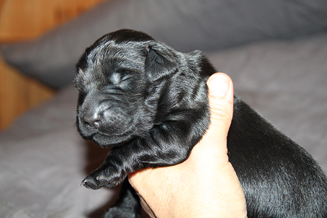 25.10.21. Trolla er bare så utrolig herlige Gode å runde. De sover spiser bsæjer og tisser fro så å gjøre det samme på nytt. Jeg blir liksom ikke mett av å ligge å titte på de :-) Mille har nok den samme følelsen for vi ligger begge å ser på de små skjønne sorte gullene når de sover :-) Her er jente merket i nakken og gutt merket i nakken.