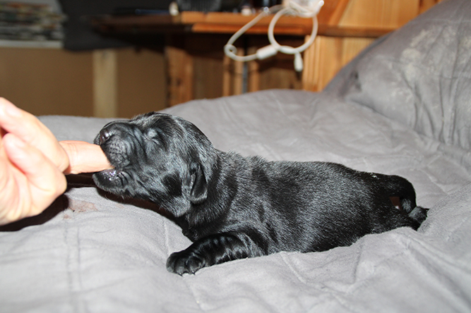 01.11.21. Det ser ut som om de løse magene er i ferd med å stabilisere seg igjen :-)Nå begynner det å bli spennende. Å vente på at de åpner øynene. Dette skjer som regel mellom dag 8 - 14 døgn gamle. Ingen hadde begynt å glippe med øynene enda . Det er så spennende :-) I dag er det skikkelig storm her ute. Mille var kjapt en tur ute å tissa før hun fortet seg inn igjen nå klokken 5. Her er jente rumpe som er helt sikker på at det er melk i min finger :-) og gutt rumpe