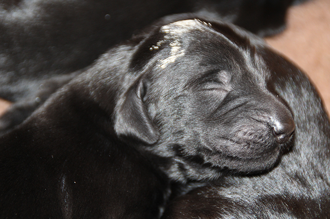 13.03.33 Nå begynner Oda å å kjede seg når de små sover . Så i går kveld lå hun mye i mellom gangen å tittet på oss og de andre hundene. Når godis tiden var på kvelden så hørte hun det veldig godt å ville ha hun å :-)Små trolla vokser så det knaker Oda fikser godt å fordele melk på alle Her er Gutt merket høyre bak og gutt merket venstre bak