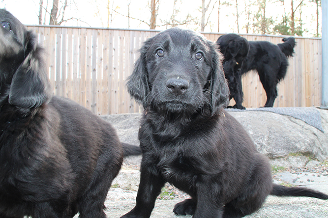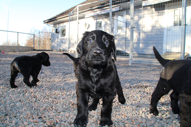 05.05.22. Det er rart med bare tre troll i huset Det synes de også I dag reiser Eros også til sitt nye hjem . Heldigvis er Mila og Saga sammen til i morgen. Alle 9 synes nok det er trist å miste alle søsknene sine. De er jo vant til at det alltid er noen der . Pass på at deres troll ikke blir alene nå i starten Det er bare trist for en liten valp. De trenger masse kos og oppmerksomhet så de føler seg trygge i sine nye hjem. De vil være der vi er siden de er vant til å være sammen hele tiden :-) Når man begynner å øve på korte økter alene så gjør man det når valpen er sliten å vil sove. Da kan man la den være alene 10-15 in av gangen å gå i et annet rom. Ha gjerne på en radio så den hører lyder å er trygg. Ikke start med for tøffe alene tider Dere får bare smellen når valpen blir eldre å det kan fort få litt seperasjons angst. Valpene er også nå renslige De har tisset og bæsjet ute nå et par uker. Så ingen aviser inne og pass på når den våkner å lær den hvor deres dør er ut Bær den gjerne nå i starten så den rekker ut :-) Her er Eros og Mila