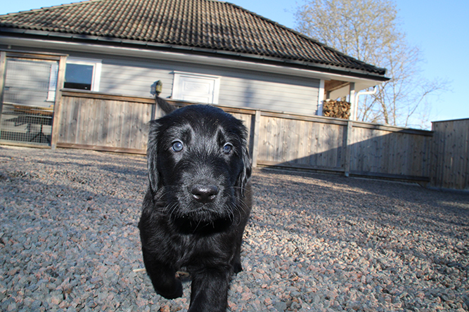 26.04.22. masse kos å lek ute i det flotte været som heldigvis kom tilbake igjen i går :-) De elsker å løpe i den store verden sammen med de store hundene. Vær obs på at valpene er utrolig trygge å tror at alle er like snille når dere får de med hjem. Pass på at de ikke kommer borti sure hunder som gir de en smell. Her er alle snille med de å de tror jo at slik er det overalt .Kimmie elsker å leke med de små Hun legger seg ned å lar de bite klatre rundt på hele seg. Hun snakker til de men er veldig mild når de biter for hardt. Elisabeth fra Agria her nå begynt å ringe rundt for å tegne forsikringen på hver og en Hun ringer til alle så dere får en tlf i løpet av denne uken :-)Hun har fått alle data på valpene med reg nr og alt hun trenger .Forsikre valpen deres med den beste forsikringen Mye kan skje med et uvørent lite kryp som aldri er der man tror den er. Veterinær er kjempe dyrt å 20000 kr forsvinner veldig fort. Vi har alle forsikret for 60000 kr i året og full dekning. Man får 10 % avslag på forsikringen når man er medlem i Norsk kennel klubb. Det er man når man automatisk er medlem i Norsk retriever klubb :-)Her er Saga og Koda.så er det alle ute i den deilig ute sengen de har når det er godt å varmt .
