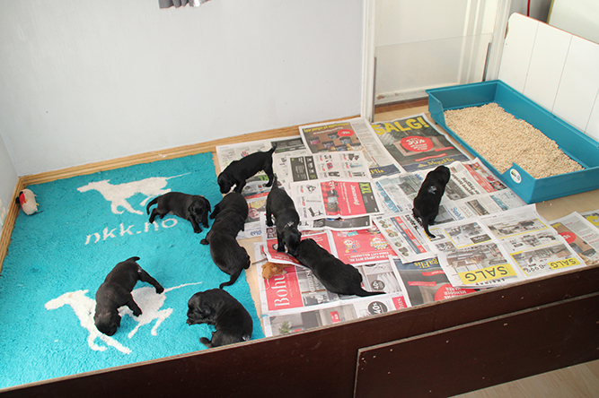 22.03.22.Nå må vi snart åpne valpe kasse her . Det er blitt trangt om plassen nå . Og vi må begynne å øve på å komme oss over på aviser for å tisse og bæsje snart :-) Vi får se om vi ikke får åpnet i løpet av en dag eller to :-)Her er Leo/ Gutt venstre bak og Eros/gutt høyre bak