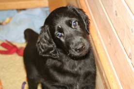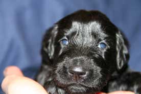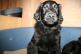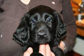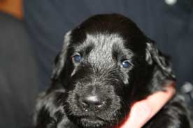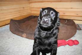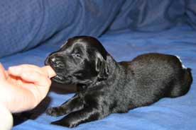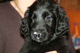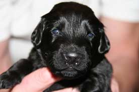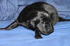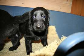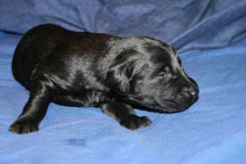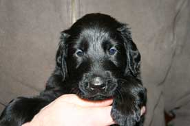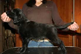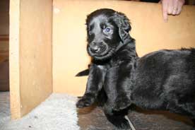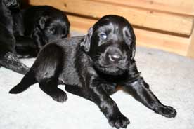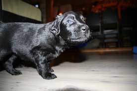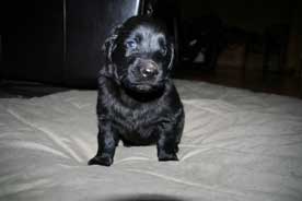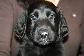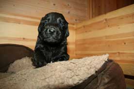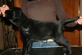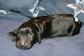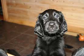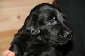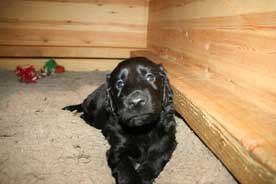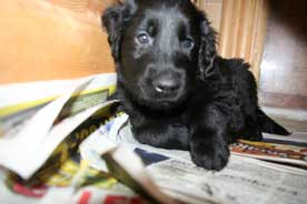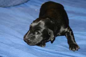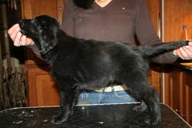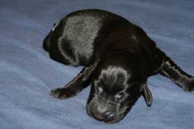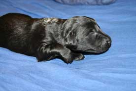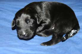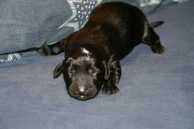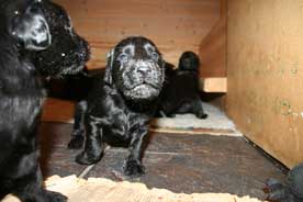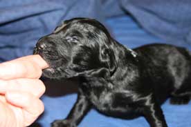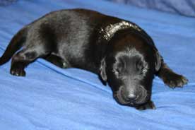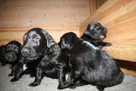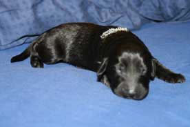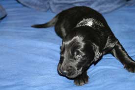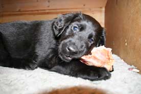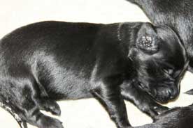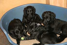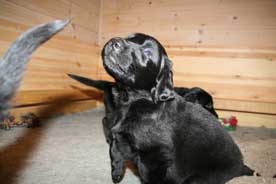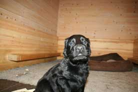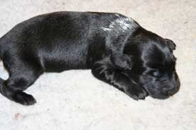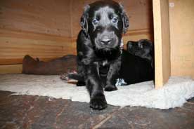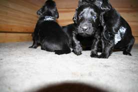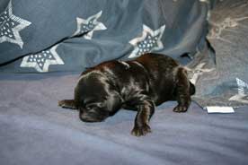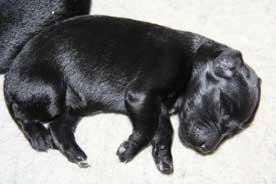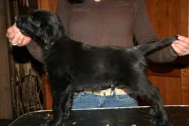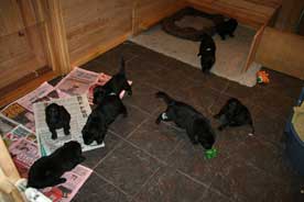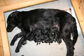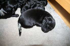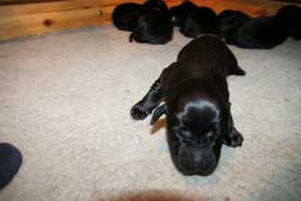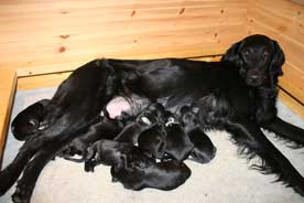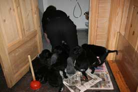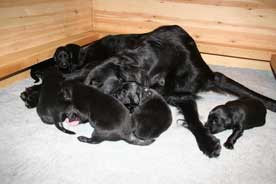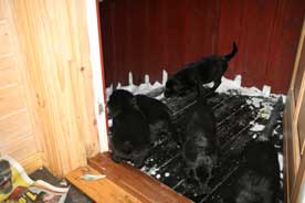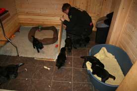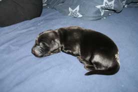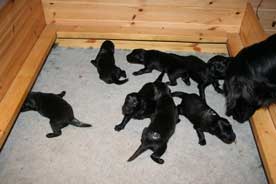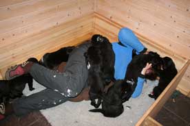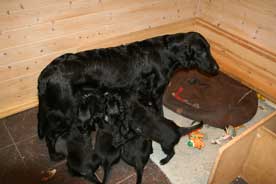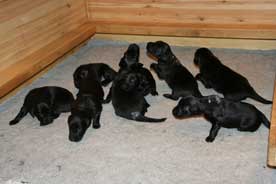 04.12.09. 1 Døgn gamle og helt nydelige. Silkesvarte så det skinner i dem. Nala er veldig rolig og avbalansert med trolla sine. Stresser ikke i det hele tatt. Hun har vært flink til å ligge i luften hvis det har kommet en valp under henne. De kravler jo rundt så det er ikke bare bare for en mamma å passe på 8 stykker. I dag var Nala med på tur i skogen.- Tror hun synes det var deilig å strekke litt på bena. Men du så dårlig tid hun hadde hjem igjen. Da var det rett oppi kassen å telte over før hun la seg ned med dem i gjen. :-) Her er Max & Sheebasom er helt siker på at det er melk i min seng.