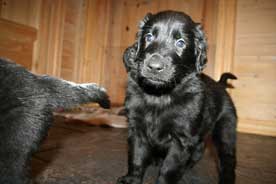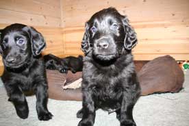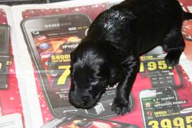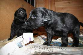 21.12.09. I dag har Kjell bursdag og det blir feiring med valpe kos. :-) Trolla har i dag fått to ganger med mat. De hyler av glede når de kjenner lukten. Så dette er populært. De har nå begynt å gå ordentlig ut på avisene for å tisse og bæsje. Ganske så flinke. Her erNikitaog Buddy