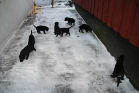 18.01.10. med litt snø i dag morges så var det faktisk kjempe gøy å leke ute. De tokk ful fart å sprang igjennom snøen så det føyket. det er så gøy å stå å se på leken deres nå. Det er noen helt nydelige små kose bamser.Her er Nikita og Buddy