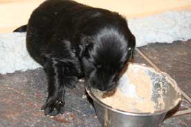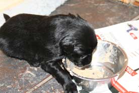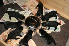23.12.09. Trolla spiser nå 2 ganger om dagen. Pent i skål. Mat er kjempe ok. I dag har de hatt sine første besøk av 2 familier. Så nå begynner sosialiseringen for fullt. Her er noomi & Sony