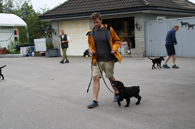 Etter en god økt med dette så alle har noe å fortsette med å trene hjemme så tok vi en velfortjent lunsj med grilling å skravling. Samt utstyr for de som ønsket det fra Musti til gode priser :-) Det er så deilig når man kan snakke med andre med valp på samme aldre å dele sorger og gleder :-) Etter den første økten var jo trolla vel slitne. Men vi viste felt søk og hvordan man lærer inn dette. Husk at 5 minutters søk tilsvarer faktisk en halvtimes tur med hodebruken :-) Trolla var flinke å løp ut å jobbet. Innkomstene må vi jobbe litt mer med men jammen var de flinke :-)