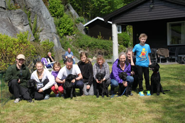 Med 5 valper i kullet og 4 som hadde mulighet til å komme så var det jo helt knall. Været viste seg fra sin beste side også. Så her har det vært nydelig. Mamma Millie kom også for å hilse på sine små håpe fulle. Her var det stor gjensyns glede.