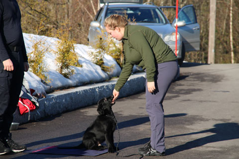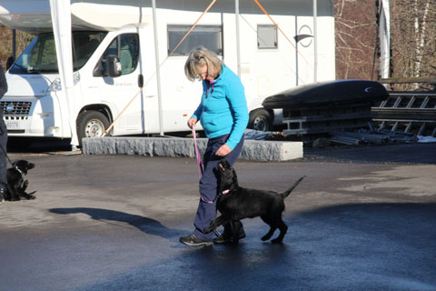 Valpene ble ganske så slitne etter nesten 1 1/2 times trening så da tok vi oss en lunsj med grill og kos. Trolla fikk kose seg sammen å leke å det var også populært.Vi hadde også fått låne med en del fra Musti som kunne handles til gode priser. så de som ønsket det gjordet det :-) Etter lunsj startet vi med litt håndterings trening og passivitets trening.